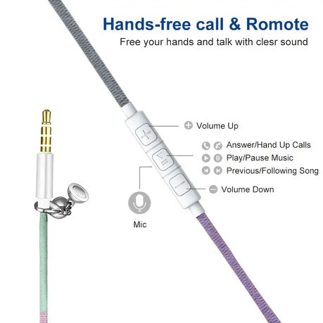 Enjoy comfort, utility and sound with these thread wrapped in-ear earphones. Designed with a unique braided cord that prevents tangles, these headphones combine durability with a modern fashion twist. Perfect for music, calls, and everyday use. Easy to wrap around your wrist while on the go.